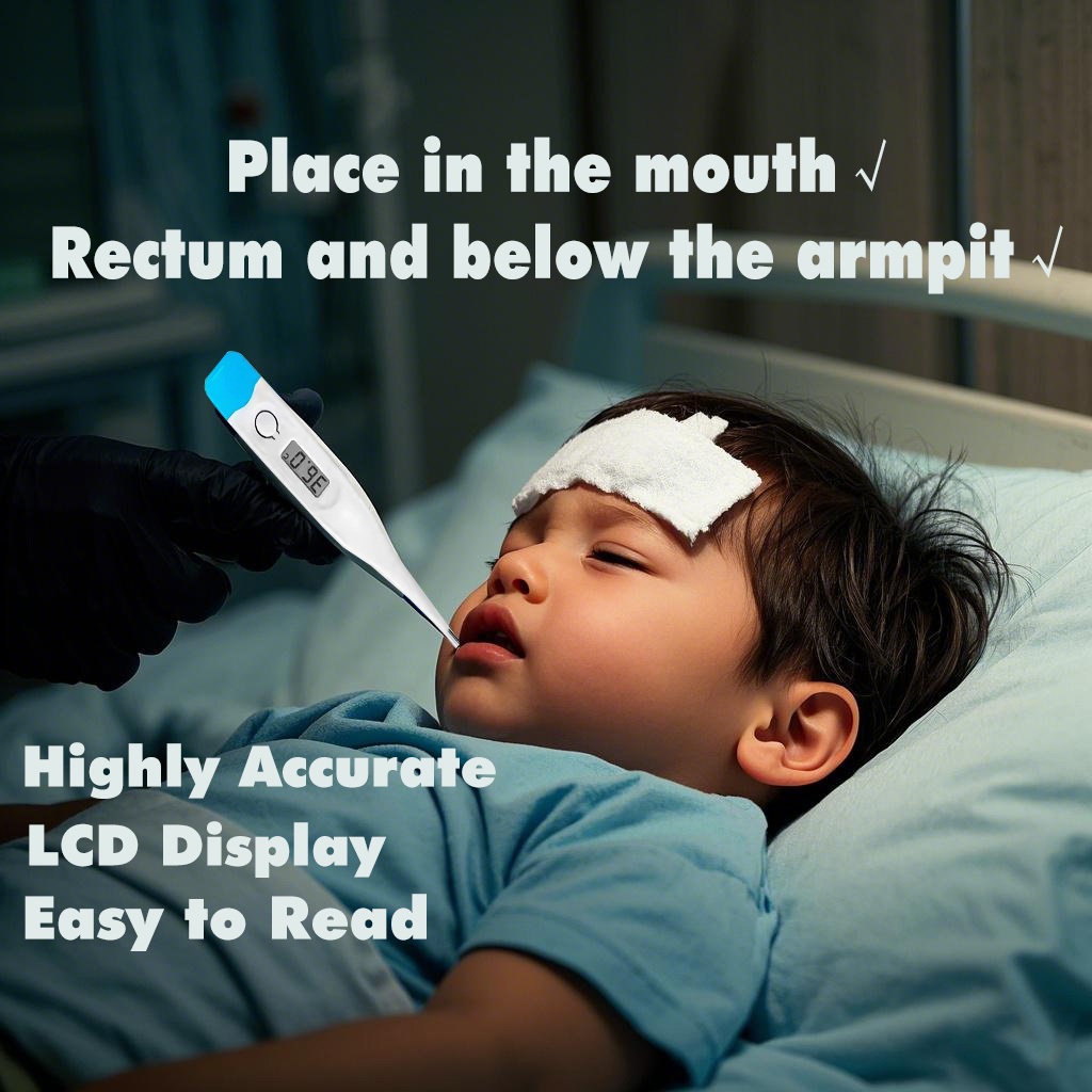 Questo termometro digitale professionale con punta rigida offre un monitoraggio della temperatura rapido, preciso e affidabile per l'assistenza domiciliare quotidiana, cliniche, ospedali e istituti medici. Progettato con una sonda rigida e robusta, garantisce un contatto stabile e letture costanti per la misurazione della temperatura orale, ascellare e rettale.