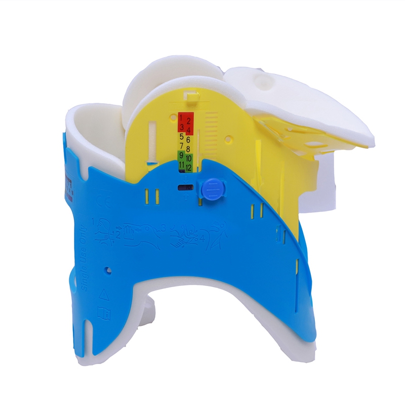 Questo collare di estricazione è un dispositivo di immobilizzazione rigido monoblocco per la colonna cervicale, progettato per aiutare i soccorritori a mantenere un allineamento neutro e a prevenire movimenti laterali, nonché flessioni ed estensioni antero-posteriori della colonna cervicale durante il trasporto del paziente, le cure di routine e la movimentazione.