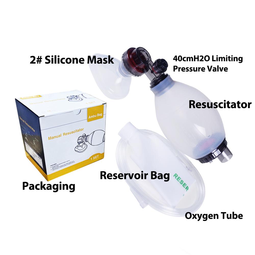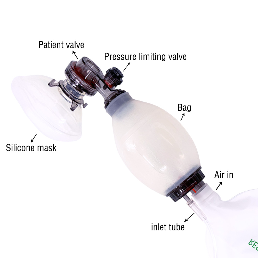 Il rianimatore manuale è realizzato principalmente in silicone di grado medicale, che offre eccellente flessibilità, elasticità e biocompatibilità. È morbido al tatto e aderisce perfettamente al viso, contribuendo a ridurre le lesioni da pressione sul volto del paziente.