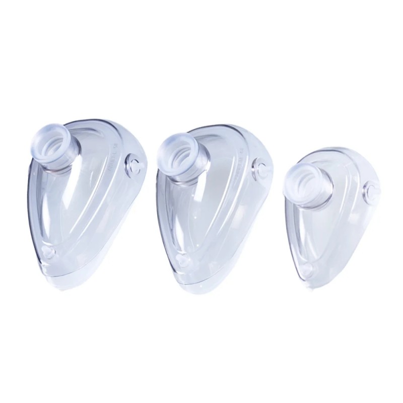 La maschera per anestesia autoclavabile può resistere fino a 40 cicli di sterilizzazione in autoclave. La sua struttura con bordo morbido garantisce un comfort ottimale per il paziente e una tenuta ermetica sicura, mentre la parte facciale trasparente consente il monitoraggio continuo del paziente. Dotata di connettori standard da 22 mm e 15 mm, è pienamente compatibile con i circuiti respiratori e altre apparecchiature mediche correlate.