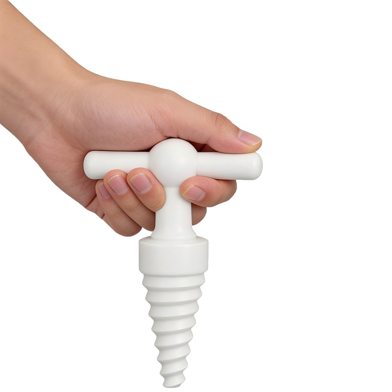 Il paziente è sdraiato supino. Inserire il divaricatore orale nello spazio interdentale. Ruotare la maniglia del divaricatore in senso orario per avvitare lentamente la punta filettata nella cavità orale del paziente. Questo mantiene la cavità orale del paziente in posizione aperta.