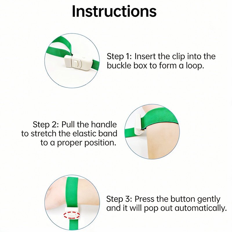 Si tratta di un nuovo tipo di laccio emostatico con fibbia, diverso da quelli tradizionali in gomma.